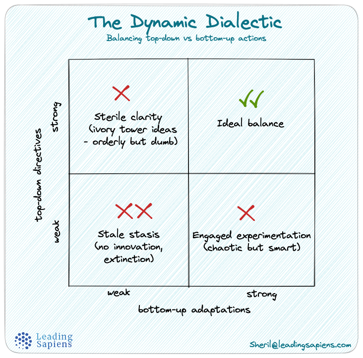 - Andy Grove called the balancing of top down and bottom up approaches "the dynamic dialectic" — it's not easy but necessary for any strategy to be effective.